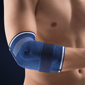Hochwertige Bandage unserer Komfort Linie zur Stabilisierung und Entlastung des Ellenbogens.
